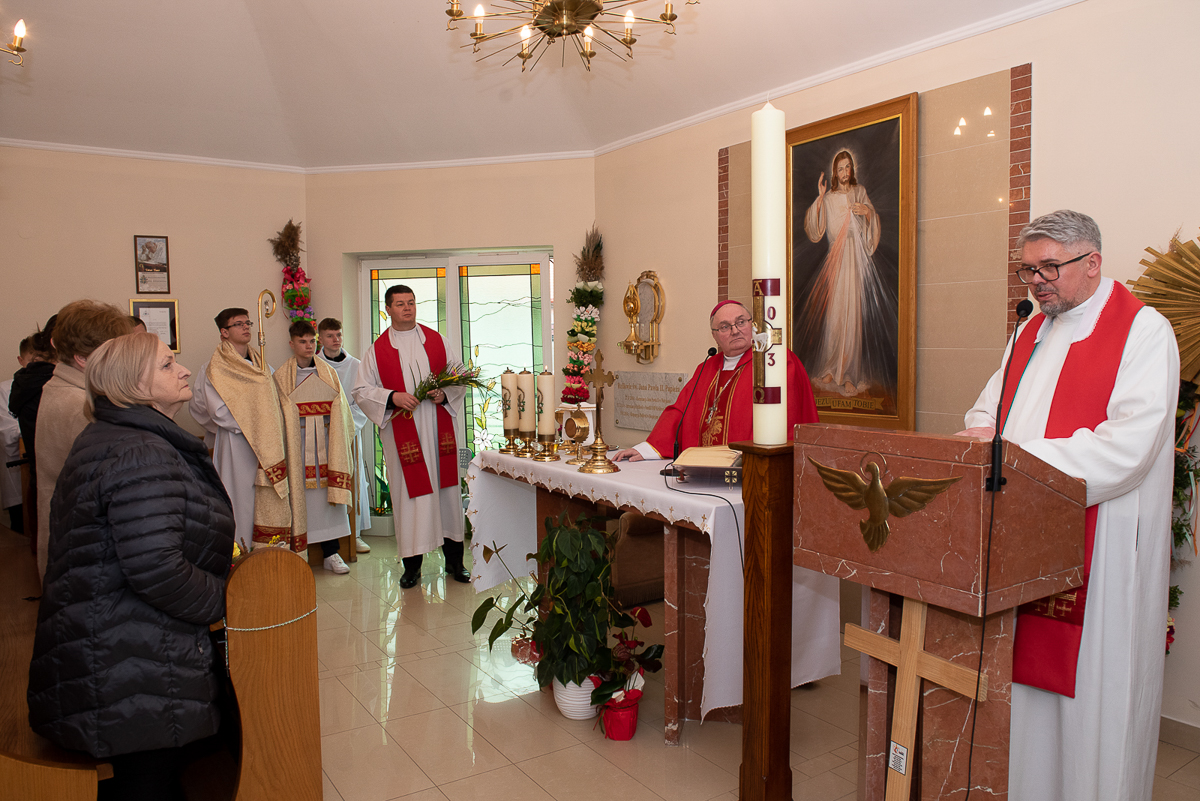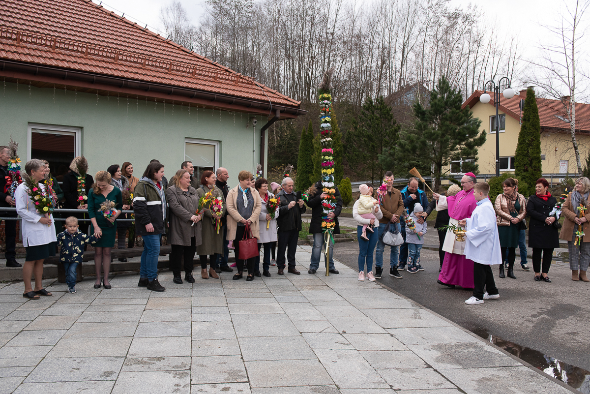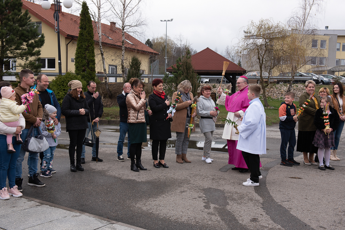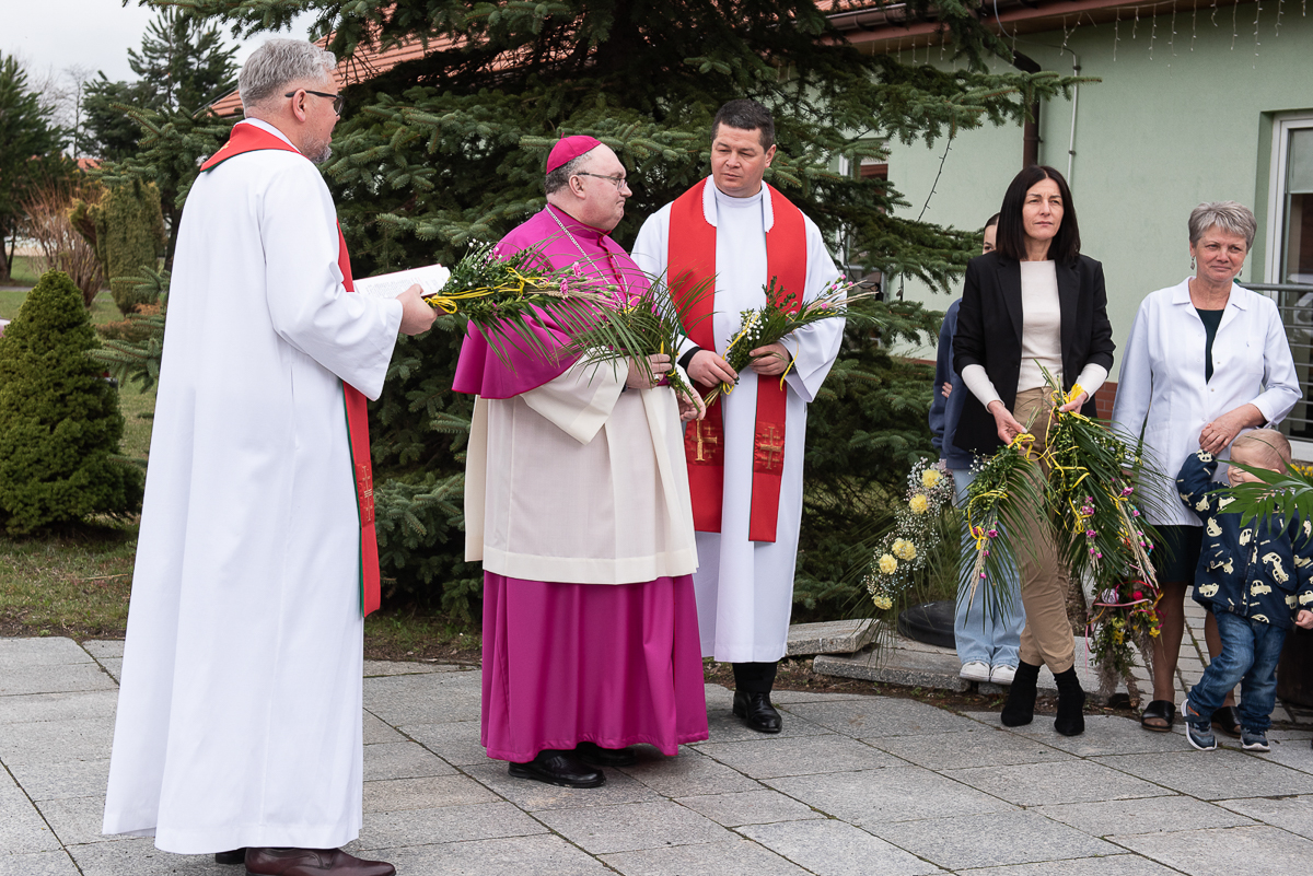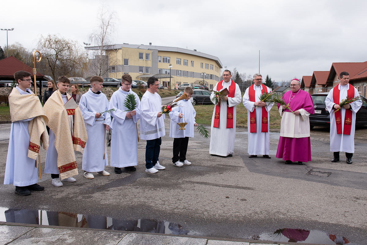Świętowanie rozpoczęło się procesją upamiętniającą wjazd Jezusa do Jerozolimy oraz odczytaniem Ewangelii przez ks. Łukasza Ślusarczyka i poświęceniem przez ks. Biskupa Palm Wielkanocnych.